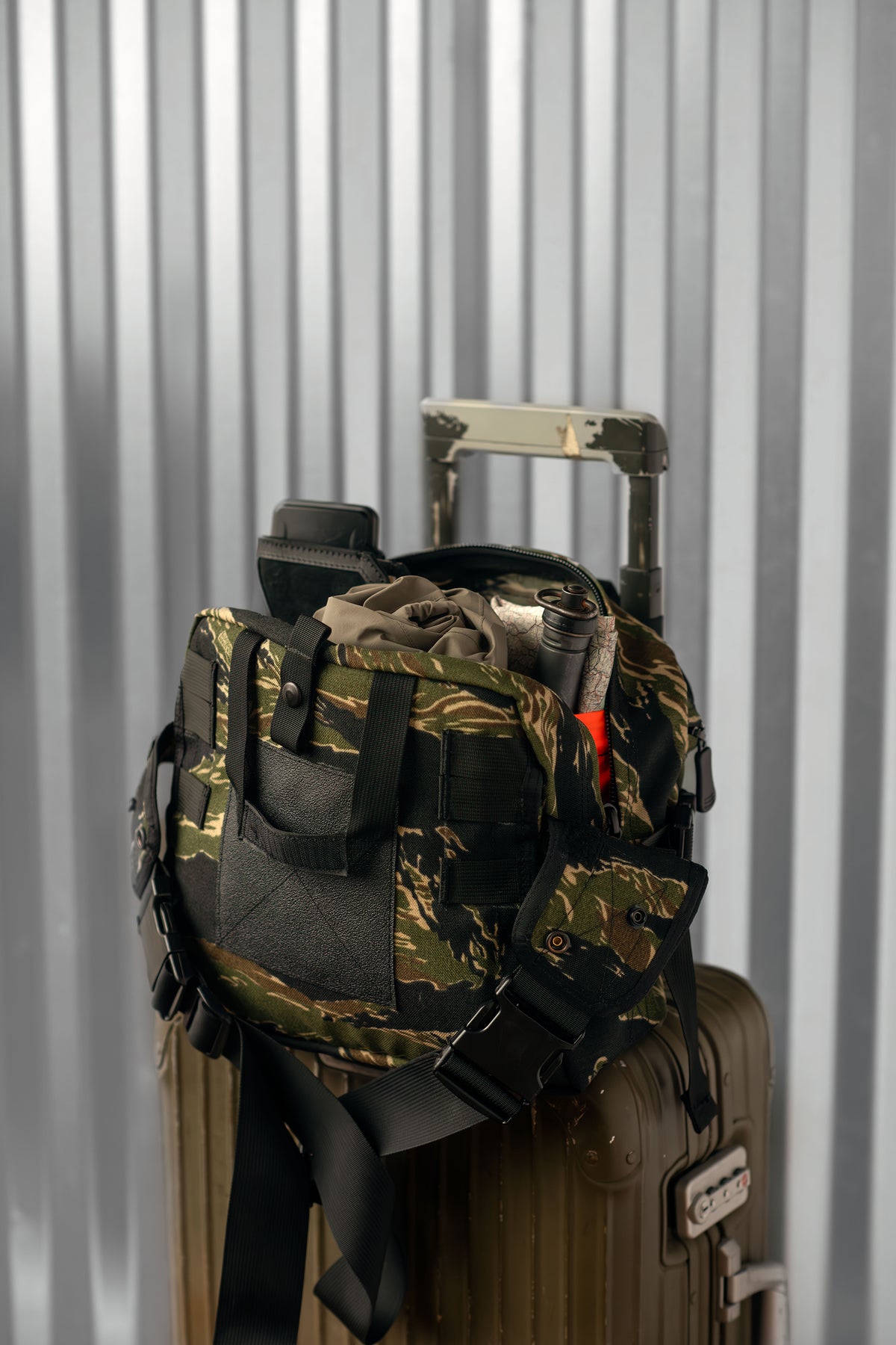 The contour of the bag laid perfectly as it rounded the hip, but because of its unique pleating, it could expand to the size of a basketball. And the outstanding feature is the shoulder strap. With a patented wing attachment system, it can wear in 9 different configurations depending on folding and snapping the wings or folding them inside the hidden compartment. Wear it as a sling, satchel, waist bag, fanny pack, vest mount pack, ruck lid, brief case carry, vehicle wall bag or pack organizer bag.